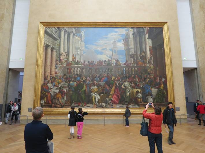 Do ponto de vista puramente artístico, a fama da Mona Lisa parece um tanto desproporcional ao tamanho do quadro. Medindo meros 77cm x 53cm, o quadro está longe de embasbacar o visitante desavisado. Na ponta oposta à parede em que a Mona Lisa está exposta, por exemplo, estão as Bodas de Caná. Com quase 7m x 10m, o monumental afresco de Veronese ocupa de fato uma parede inteira do maior museu do mundo. Toda essa grandiosidade, contudo, parece de pouca relevância para efeito de público, pois as pessoas quase se estapeiam na fila para tirar uma foto com a obra de Da Vinci, enquanto o quadro de Veronese fica em geral entregue às moscas, servindo-se dos poucos visitantes que resolvem olhar à sua volta para ver o que há no ambiente.